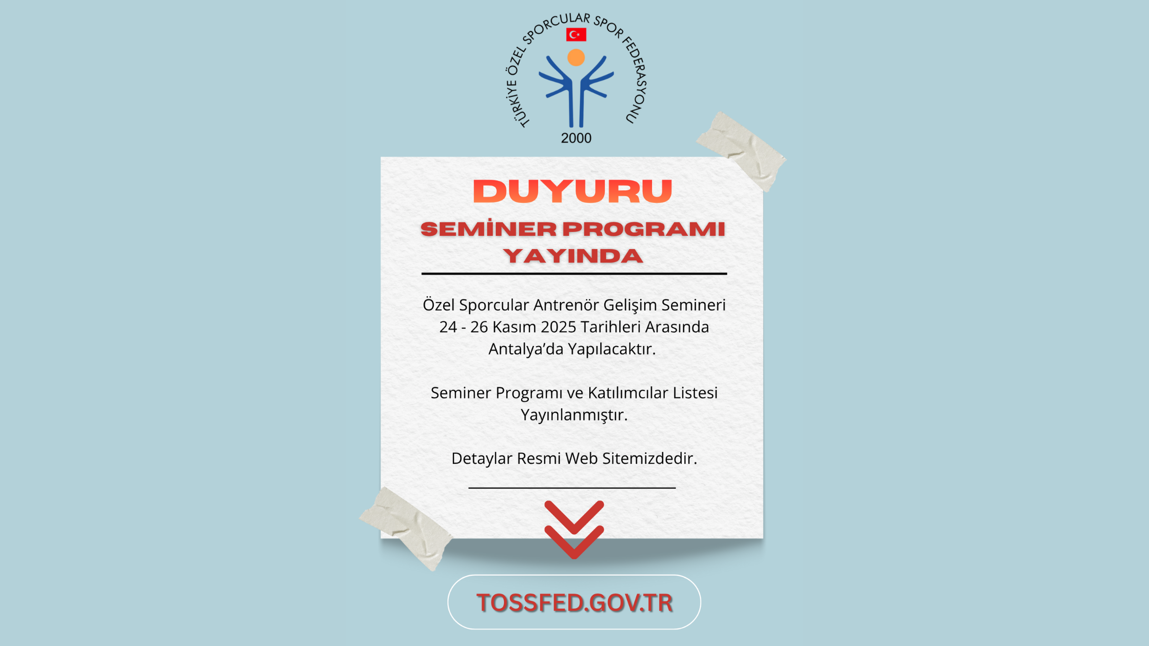 “Özel Sporcular Antrenör Gelişim Seminerine katılacak tüm katılımcılara başarılar dilerim.”