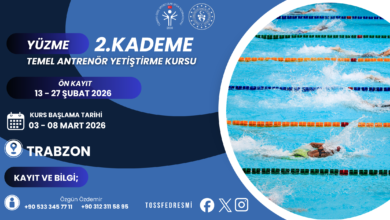 ÖZEL SPORCULAR 2. KADEME YÜZME TEMEL ANTRENÖR KURSU 03 – 08 MART 2026 TARİHLERİ ARASINDA TRABZON’DA YAPILACAKTIR. BAŞVURULARI 13 –…