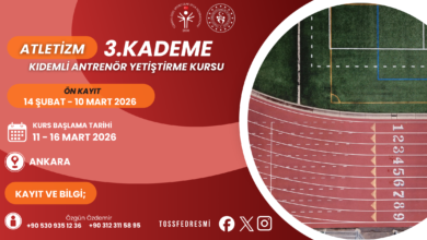 ÖZEL SPORCULAR 3. KADEME ATLETİZM KIDEMLİ ANTRENÖR KURSU 11 – 16 MART 2026 TARİHLERİ ARASINDA ANKARA’DA YAPILACAKTIR. BAŞVURULARI 14 ŞUBAT –…