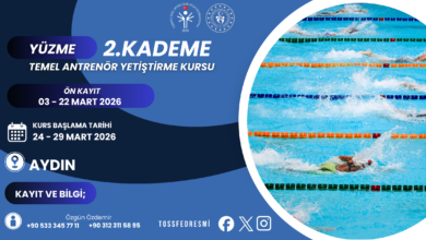 ÖZEL SPORCULAR 2. KADEME YÜZME TEMEL ANTRENÖR KURSU 24 – 29 MART 2026 TARİHLERİ ARASINDA AYDIN’DA YAPILACAKTIR. BAŞVURULARI 03 –…