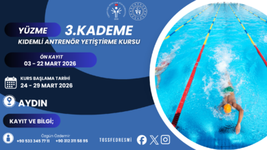 ÖZEL SPORCULAR 3. KADEME YÜZME KIDEMLİ ANTRENÖR KURSU 24 – 29 MART 2026 TARİHLERİ ARASINDA AYDIN’DA YAPILACAKTIR. BAŞVURULARI 03 –…