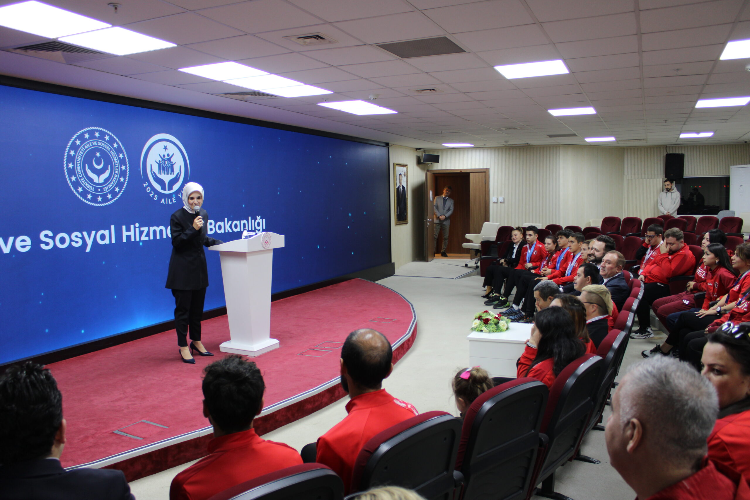 Aile ve Sosyal Hizmetler Bakanımız Sayın Mahinur Özdemir Göktaş, ulusal ve uluslararası arenada gösterdikleri üstün başarılar için özel sporcularımızı tek tek tebrik ederek başarılarının devamını diledi. Sporcularımızla yakından ilgilenen Bakan Göktaş, onların azmi, disiplini ve Türkiye’ye kazandırdıkları gurur dolu başarılardan dolayı duyduğu memnuniyeti ifade etti.