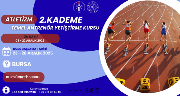 ÖZEL SPORCULAR 2. KADEME ATLETİZM TEMEL ANTRENÖR KURSU 23 – 28 ARALIK 2025 TARİHLERİ ARASINDA BURSA’DA YAPILACAKTIR.