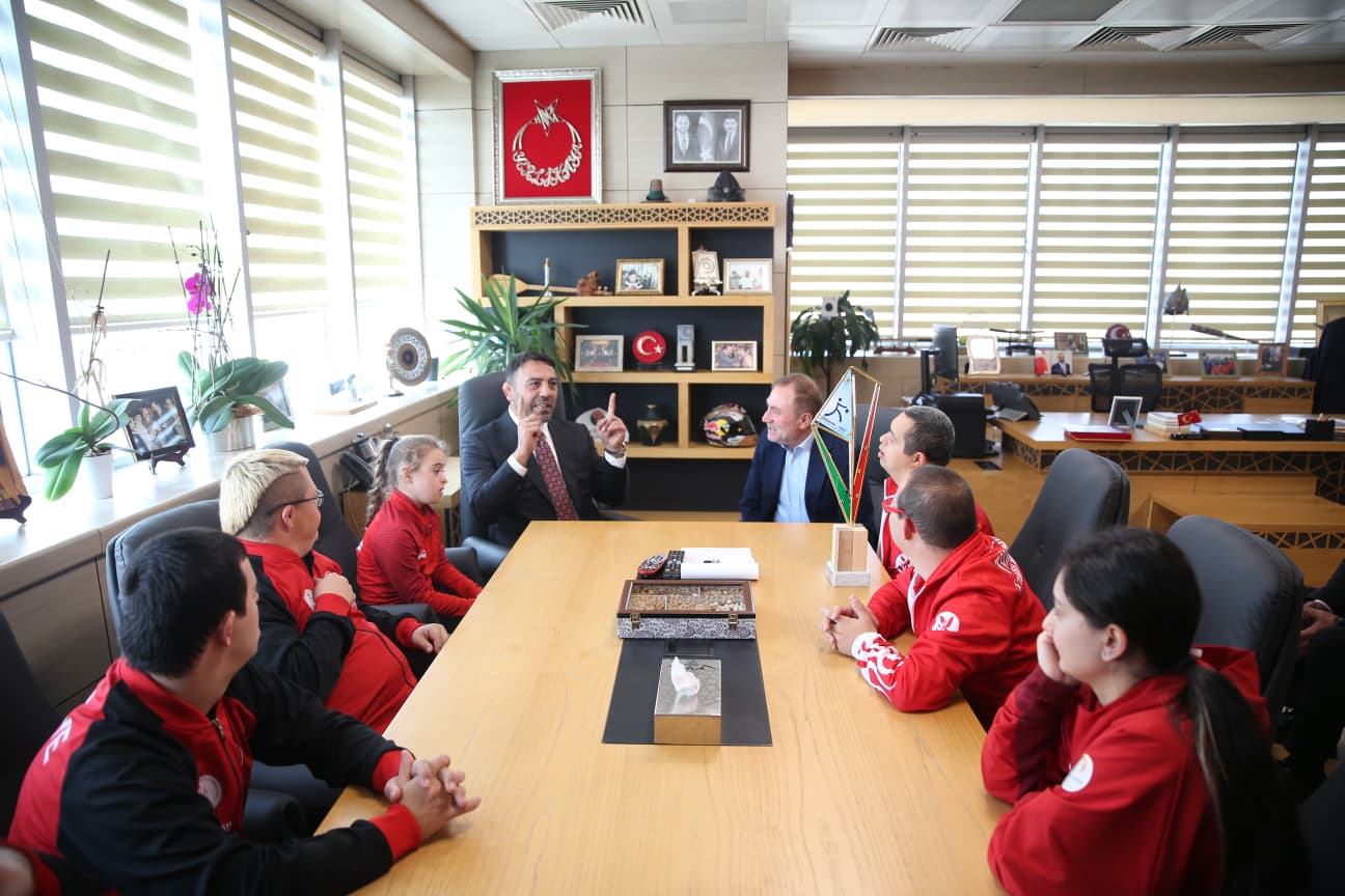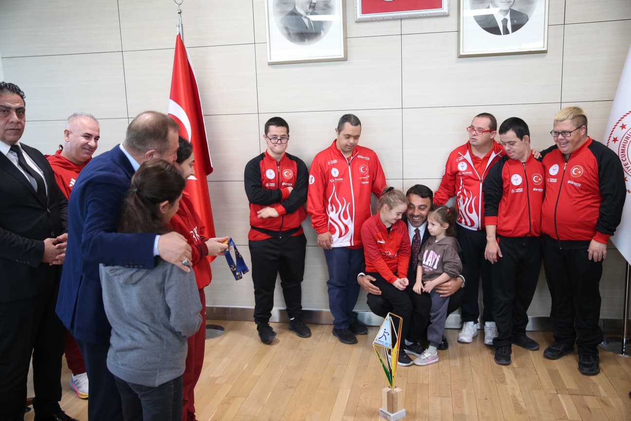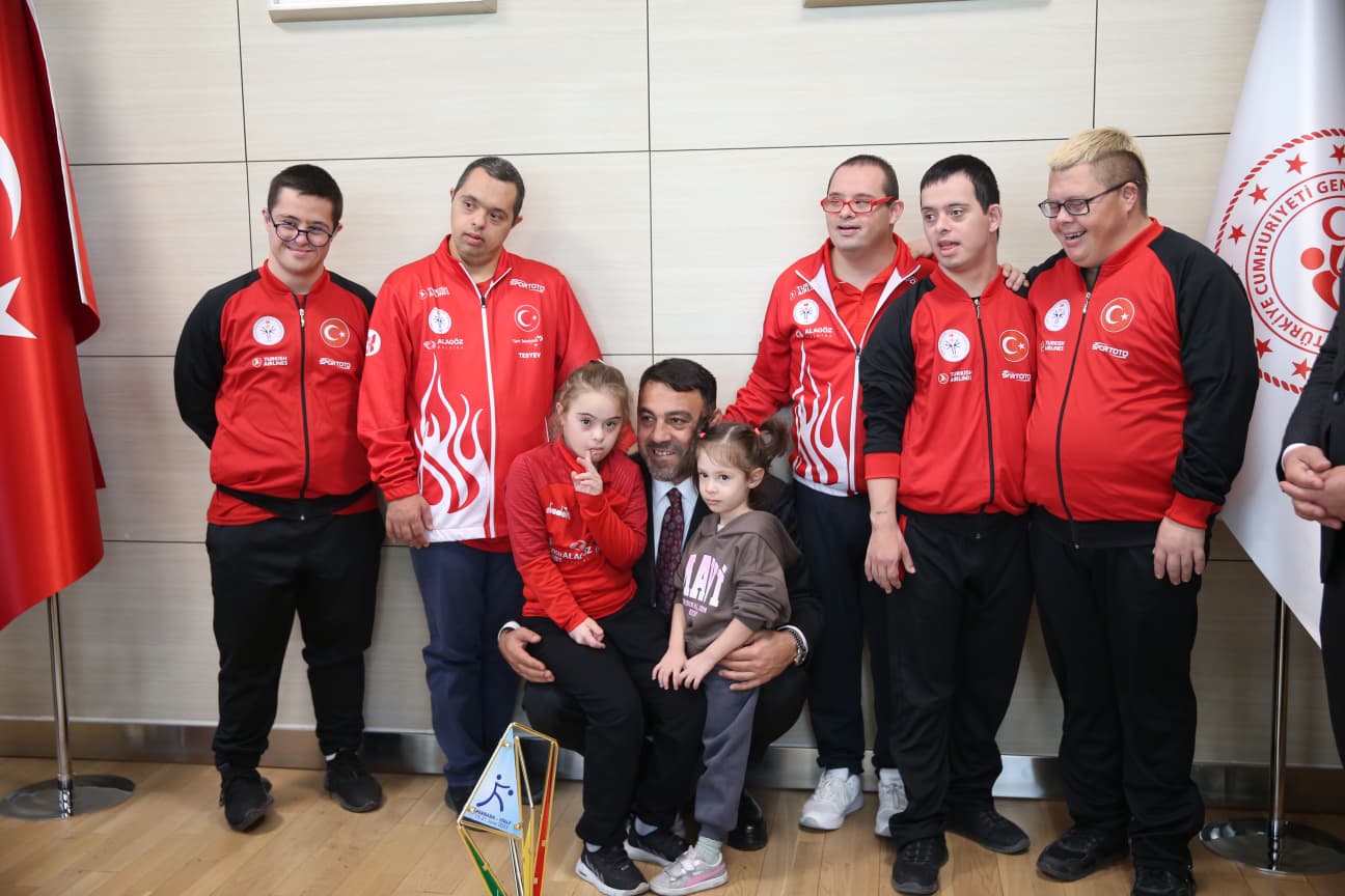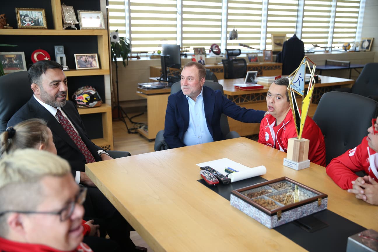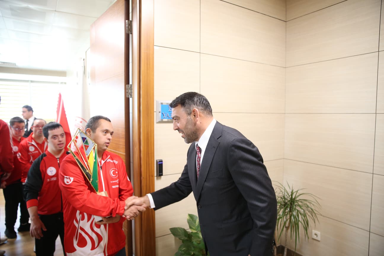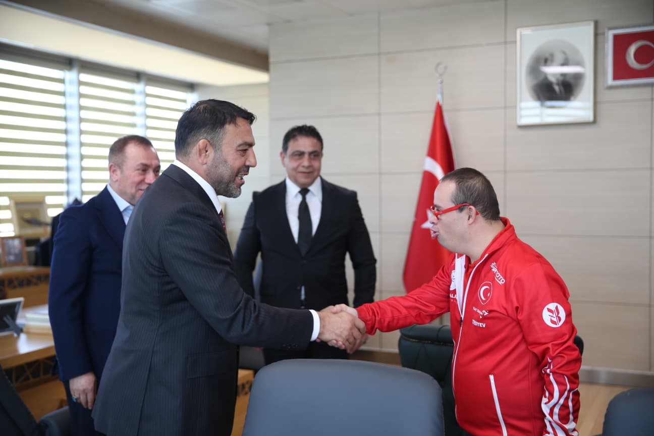 Türkiye Özel Sporcular Spor Federasyonu, 3 Aralık Dünya Engelliler Günü kapsamında Down Basketbol Milli Takımı özel sporcuları, Para Masa Tenisi Kadınlar Milli Takımı özel sporcusu Ebru Acer ve Down’lu özel sporcumuz Gülnur Azra Ağkuş ile birlikte Gençlik ve Spor Bakan Yardımcısı Sayın Hamza Yerlikaya’yı makamında ziyaret etti.