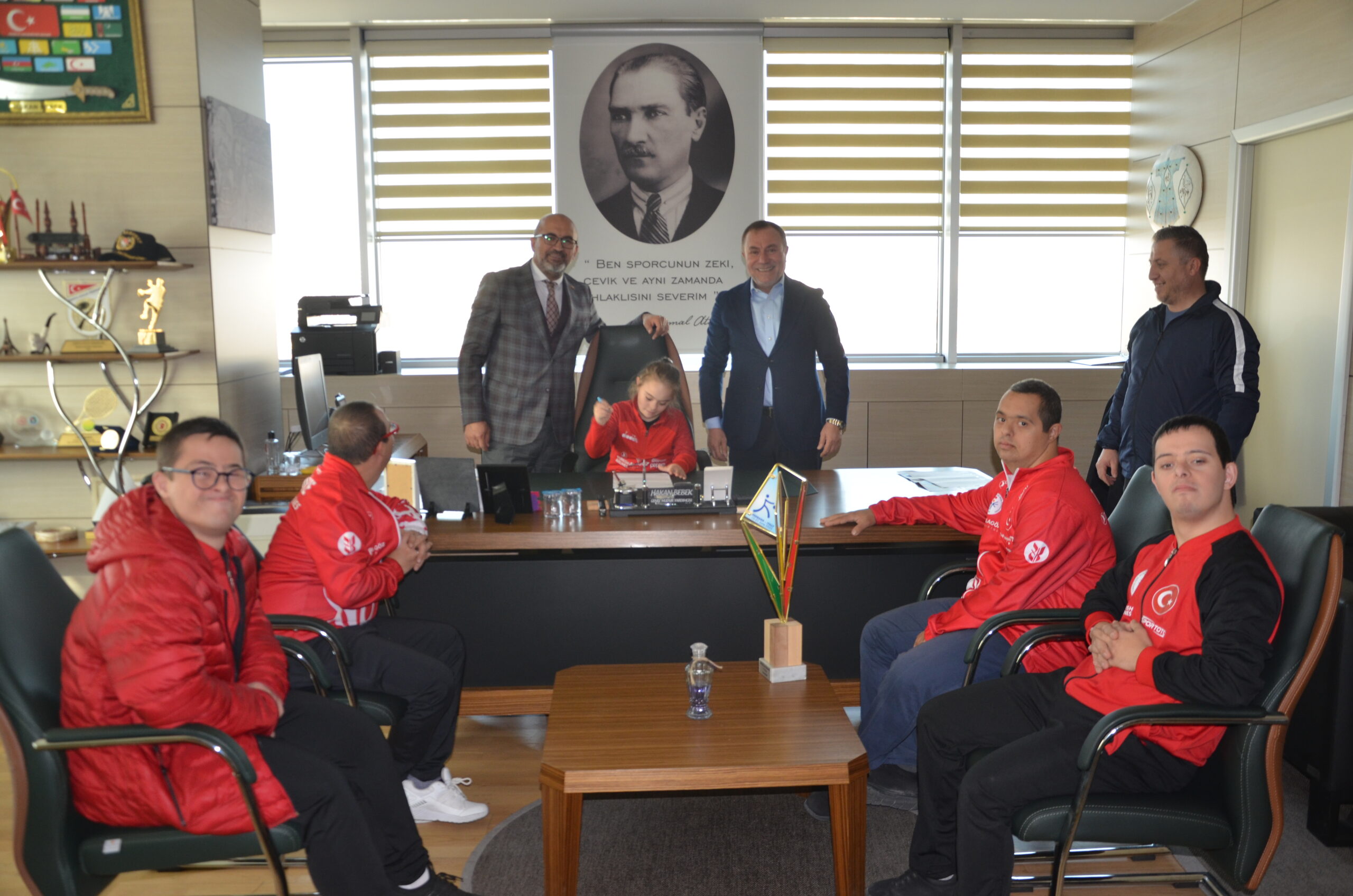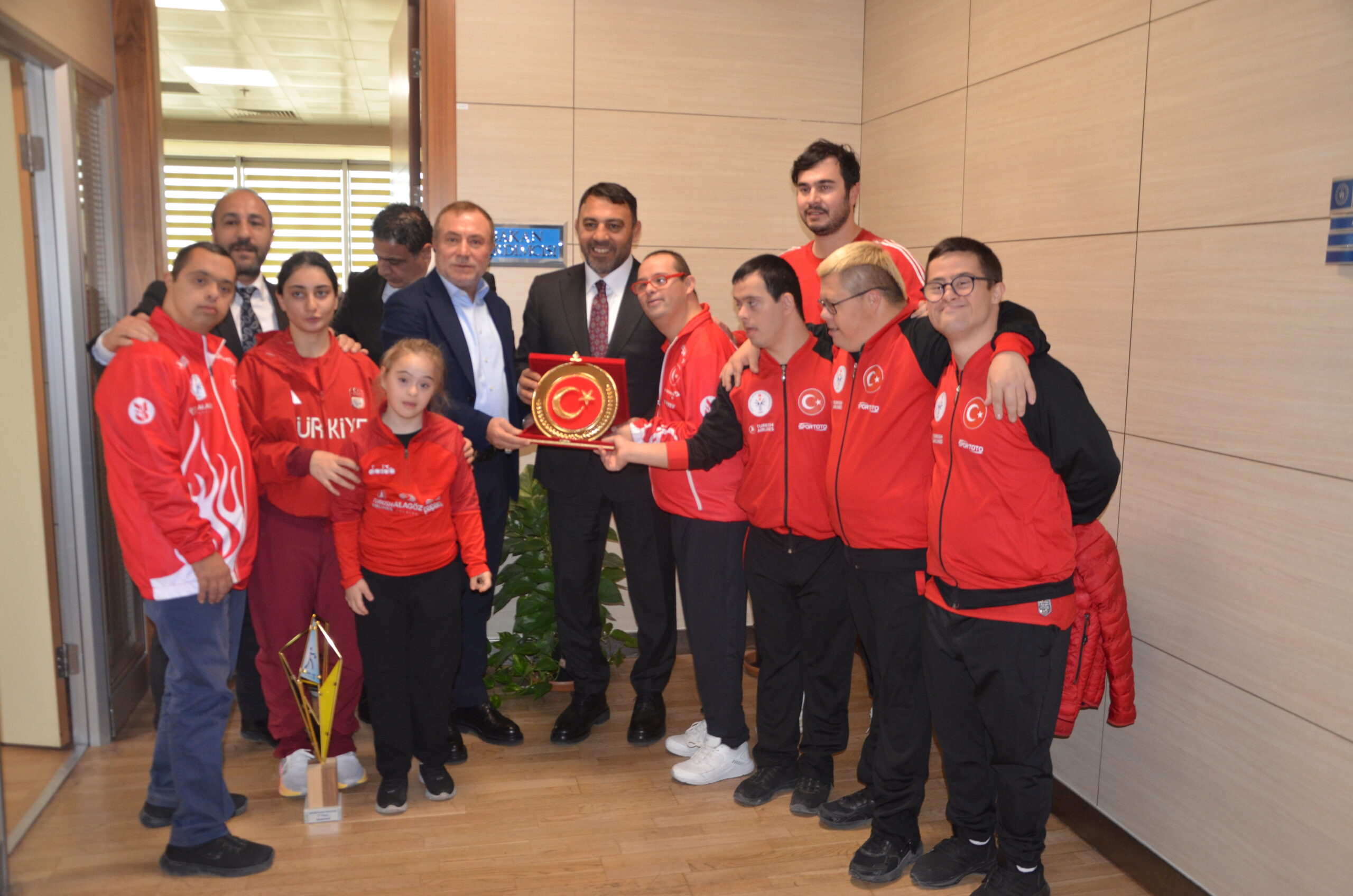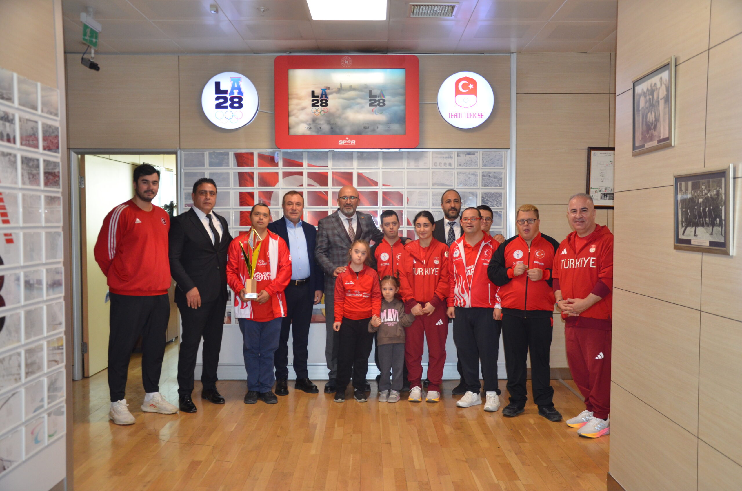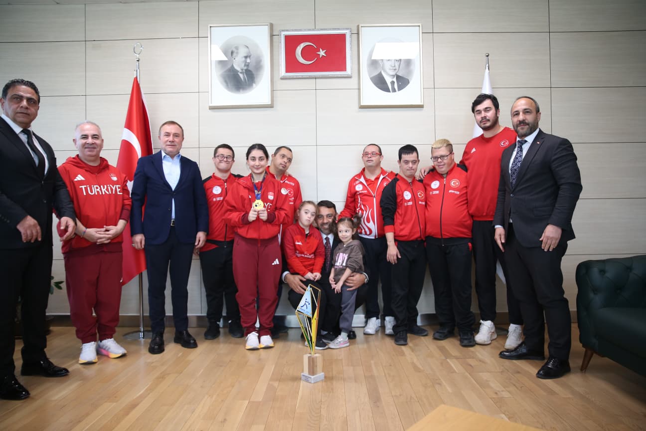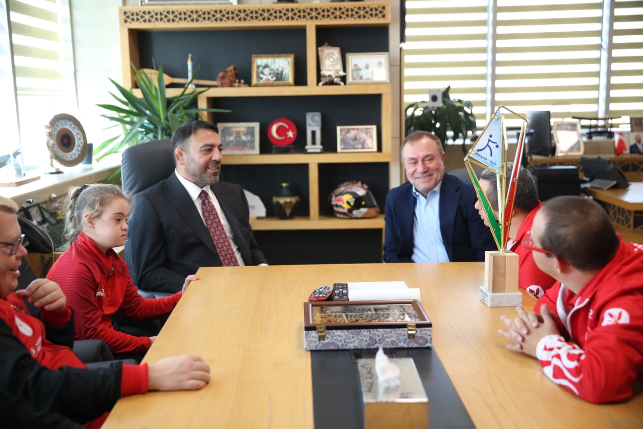 Türkiye Özel Sporcular Spor Federasyonu, 3 Aralık Dünya Engelliler Günü kapsamında Down Basketbol Milli Takımı özel sporcuları, Para Masa Tenisi Kadınlar Milli Takımı özel sporcusu Ebru Acer ve Down’lu özel sporcumuz Gülnur Azra Ağkuş ile birlikte Gençlik ve Spor Bakan Yardımcısı Sayın Hamza Yerlikaya’yı makamında ziyaret etti.