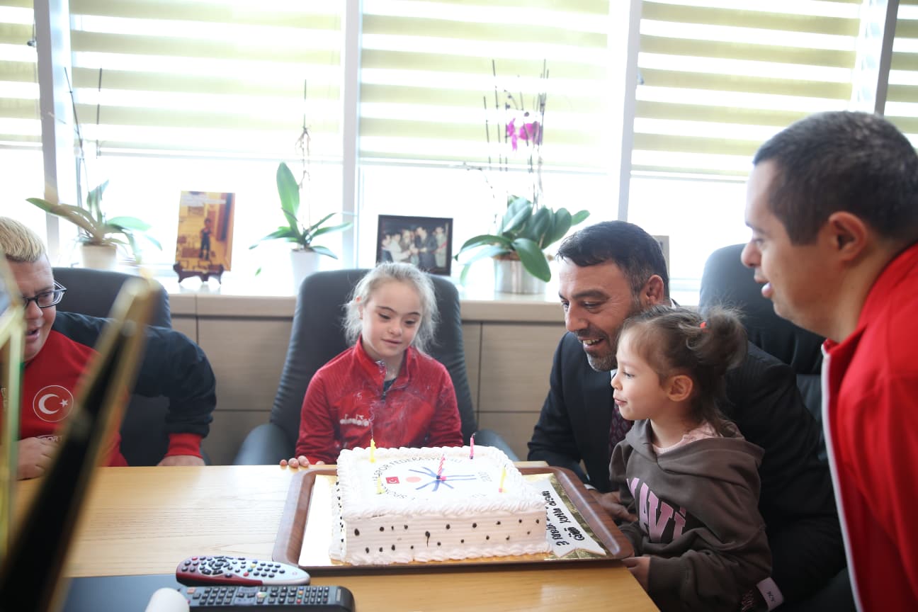 Ziyaret kapsamında federasyon adına pasta kesimi yapıldı ve Sayın Hamza Yerlikaya’ya federasyon plaketi takdim edildi. Yerlikaya, özel sporcuların başarılarından duyduğu memnuniyeti dile getirerek sporcuları tek tek tebrik etti.