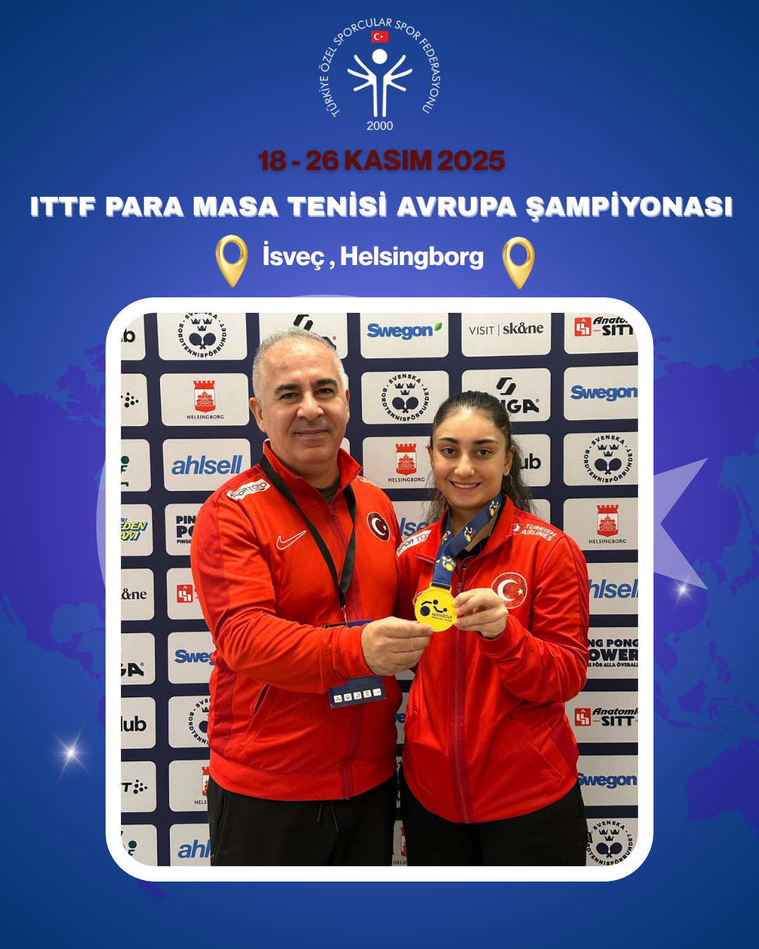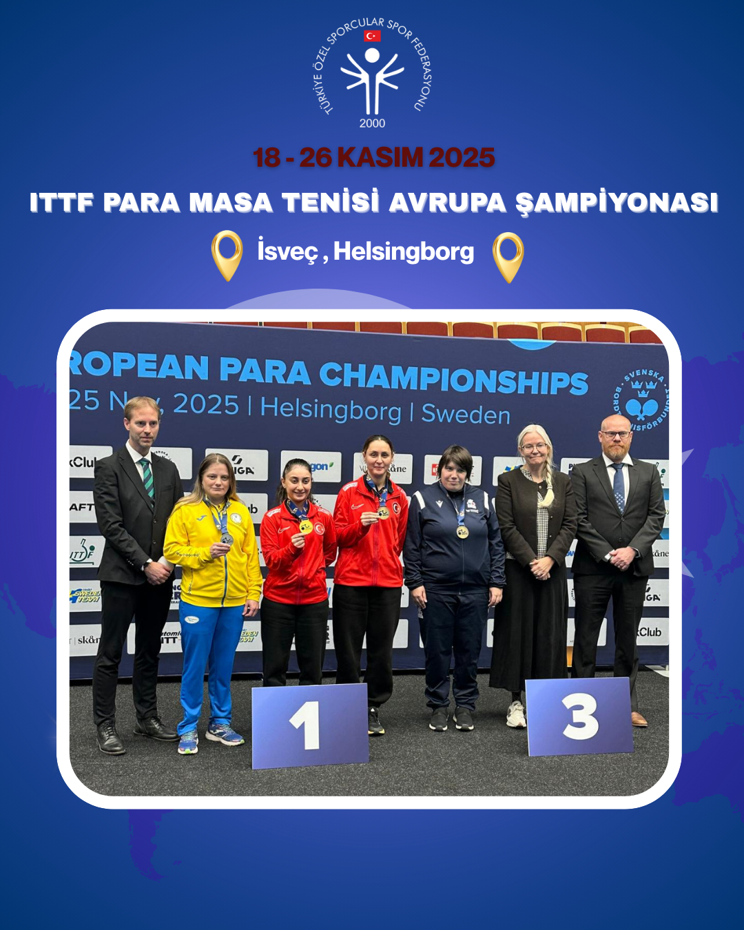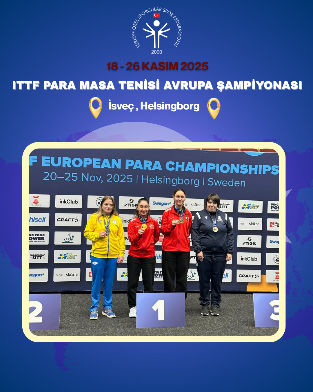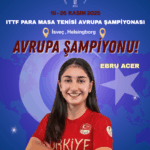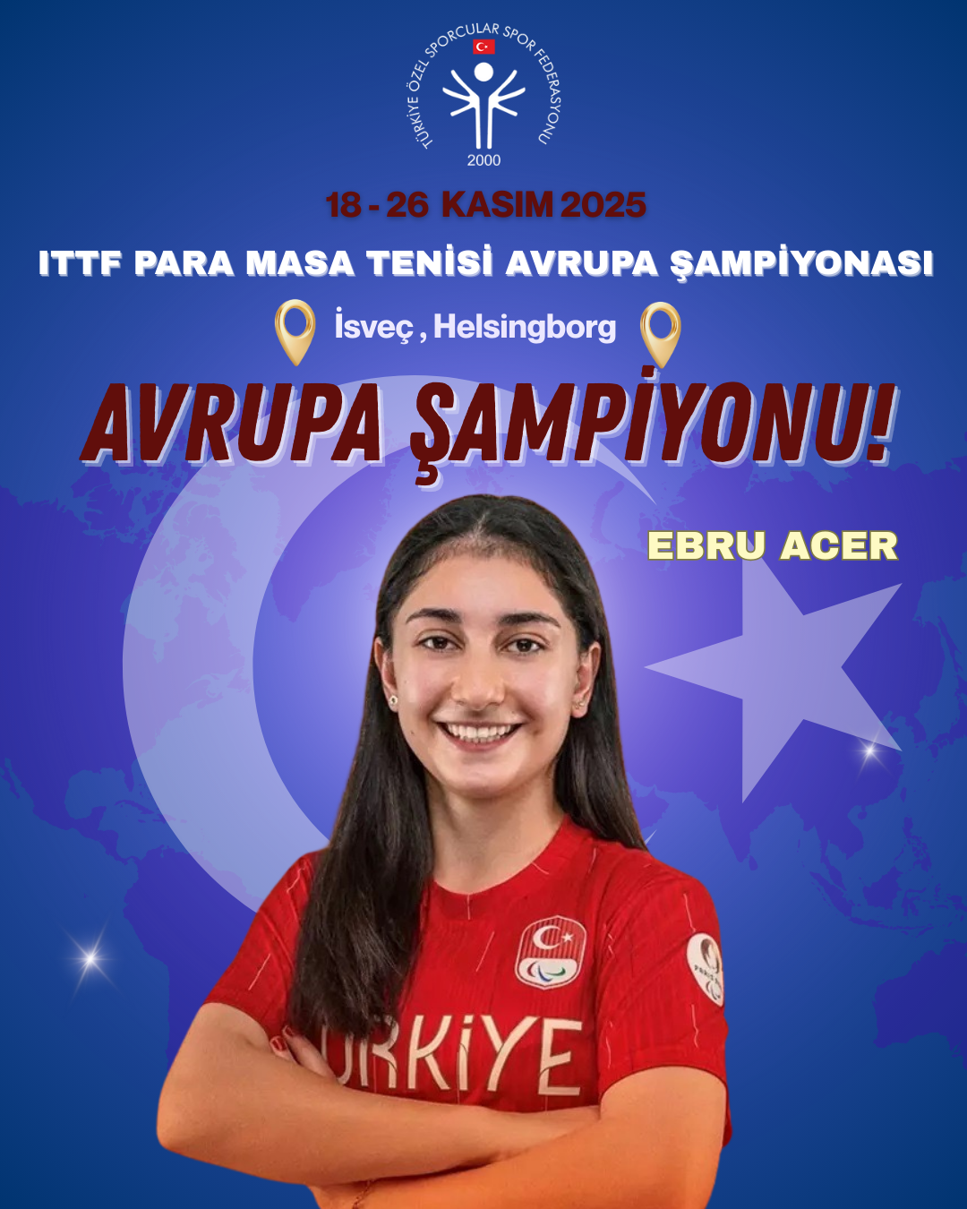 İsveç’in Helsingborg kentinde düzenlenen 18–26 Kasım 2025 ITTF Para Masa Tenisi Avrupa Şampiyonası’nda milli özel sporcumuz Ebru Acer, finalde Ukraynalı rakibi Kosmina Natalia’yı 3–0 mağlup ederek Avrupa Şampiyonu oldu.