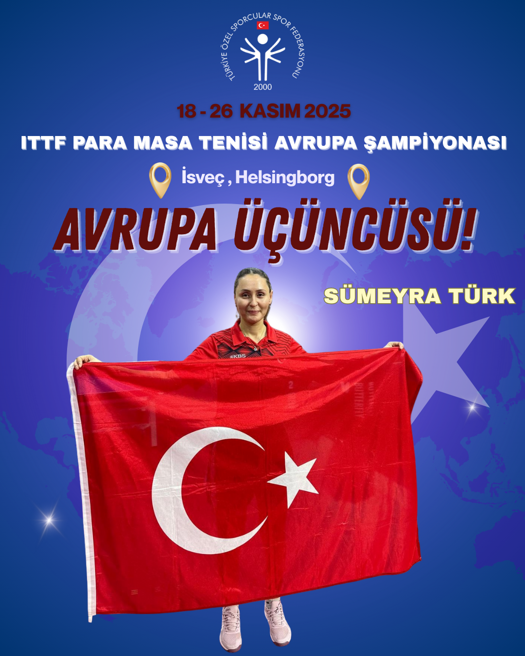 Milli Özel Sporcumuz Sümeyra Türk ise rakiplerini geride bırakarak Avrupa üçüncülüğünü elde etti ve kürsüye çıkan ikinci Türk sporcu oldu. Türkiye böylece kadınlar kategorisinde 1 altın + 1 bronz madalya ile şampiyonada önemli bir başarıya imza attı.
