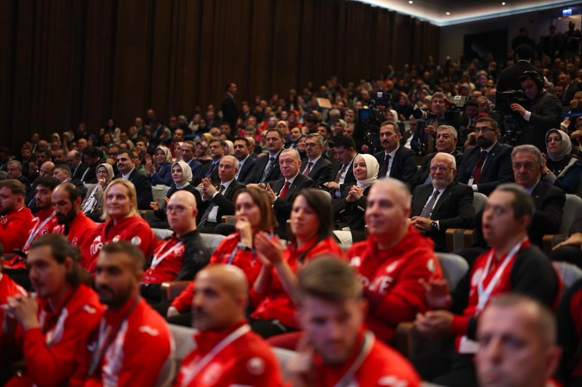 Programda özel sporcularımız, Cumhurbaşkanımız Sayın Recep Tayyip Erdoğan’a günün anısına 2024 Trisome Games ve 2024 Paris Paralimpik Oyunlarında Madalya kazanan Şampiyon Özel Sporcularımızın imzaladığı Milli Takım Forma Tablosu takdim etti. Cumhurbaşkanımızın engelli bireyler ve özel sporculara yönelik desteklerini ifade ettiği konuşması, salonda bulunan tüm konuklar tarafından memnuniyetle karşılandı.