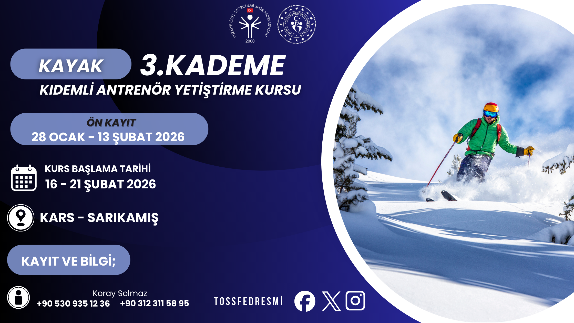 ÖZEL SPORCULAR 3. KADEME KAYAK KIDEMLİ ANTRENÖR KURSU 16 – 21 ŞUBAT 2026 TARİHLERİ ARASINDA KARS, SARIKAMIŞ’TA YAPILACAKTIR.