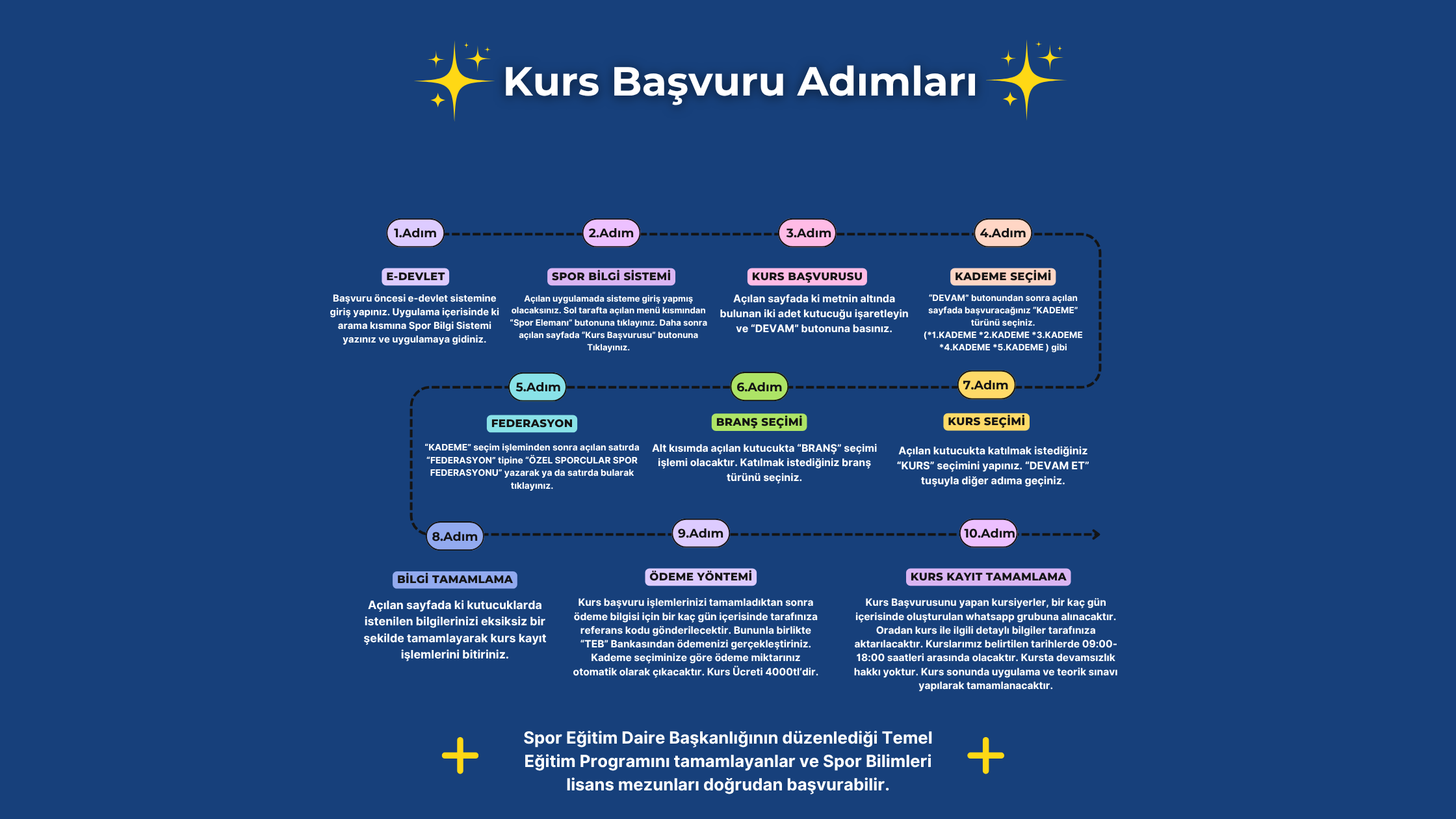 Spor Eğitimi ve Araştırmaları Daire Başkanlığının her yıl düzenlediği Temel Eğitim Programına katılıp başarılı olanlar kursa başvuru yapabilir.