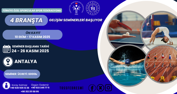 ÖZEL SPORCULAR GELİŞİM SEMİNERLERİ 24 – 26 KASIM 2025 TARİHLERİ ARASINDA ANTALYA’DA YAPILACAKTIR.