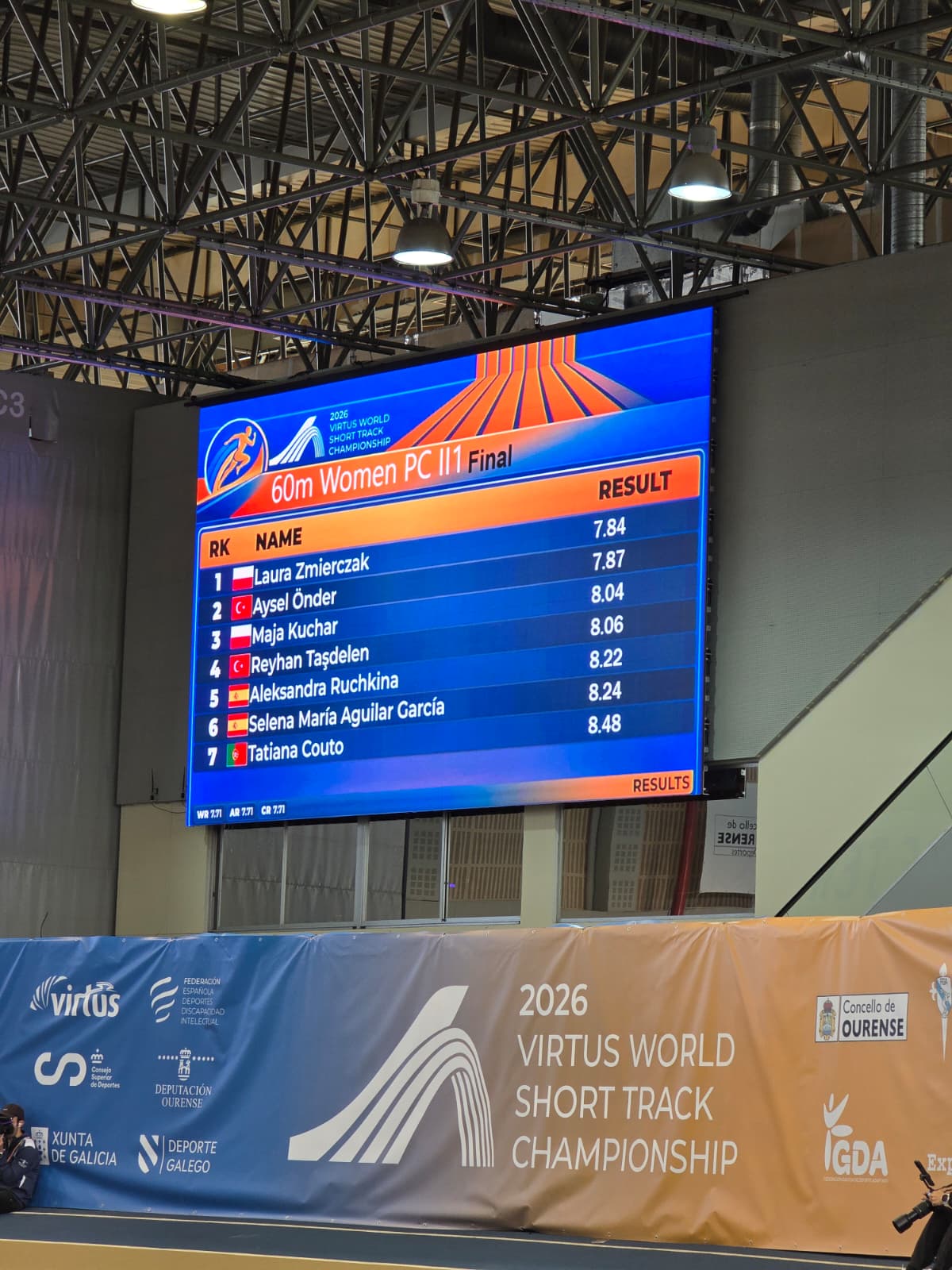 İspanya’nın Ourense kentinde devam eden VIRTUS Para Atletizm Dünya Salon Şampiyonası’nda özel sporcumuz Aysel Önder, T20 kategorisi 60 metre koşu yarışında 7.87’lik derecesiyle dünya ikincisi olarak gümüş madalyanın sahibi oldu.