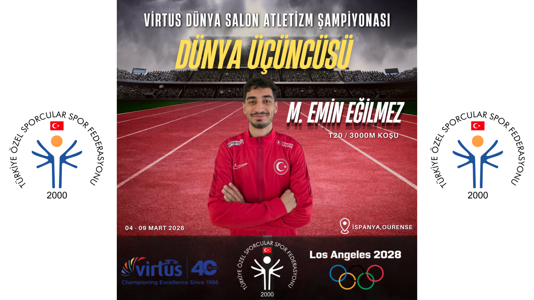 İspanya’nın Ourense kentinde düzenlenen VIRTUS Dünya Salon Atletizm Şampiyonası’nda milli özel sporcumuz Mehmet Emin Eğilmez, T20 kategorisi 3000 metre koşuda 8:28.44’lük derecesiyle kişisel en iyi performansını gerçekleştirerek Dünya Üçüncüsü oldu ve bronz madalyanın sahibi oldu.