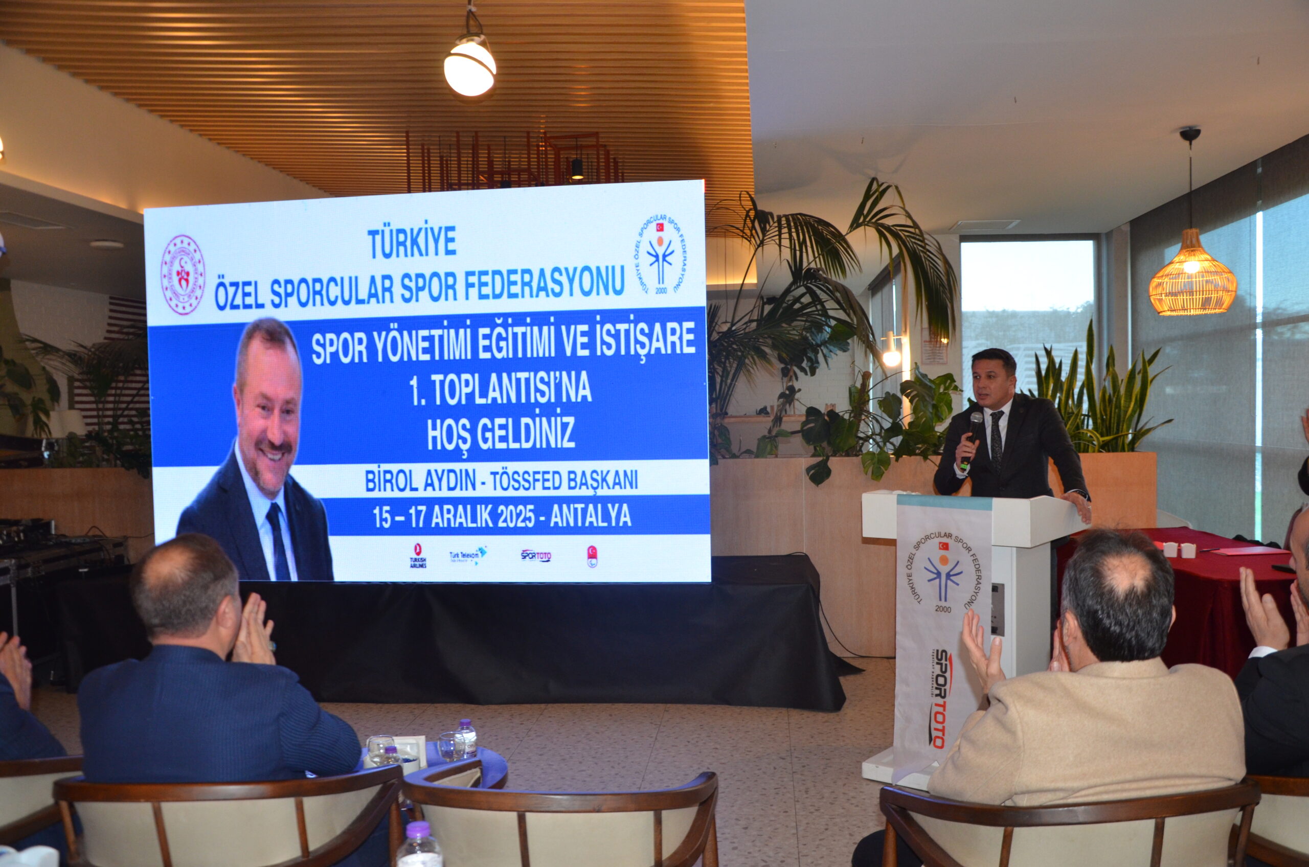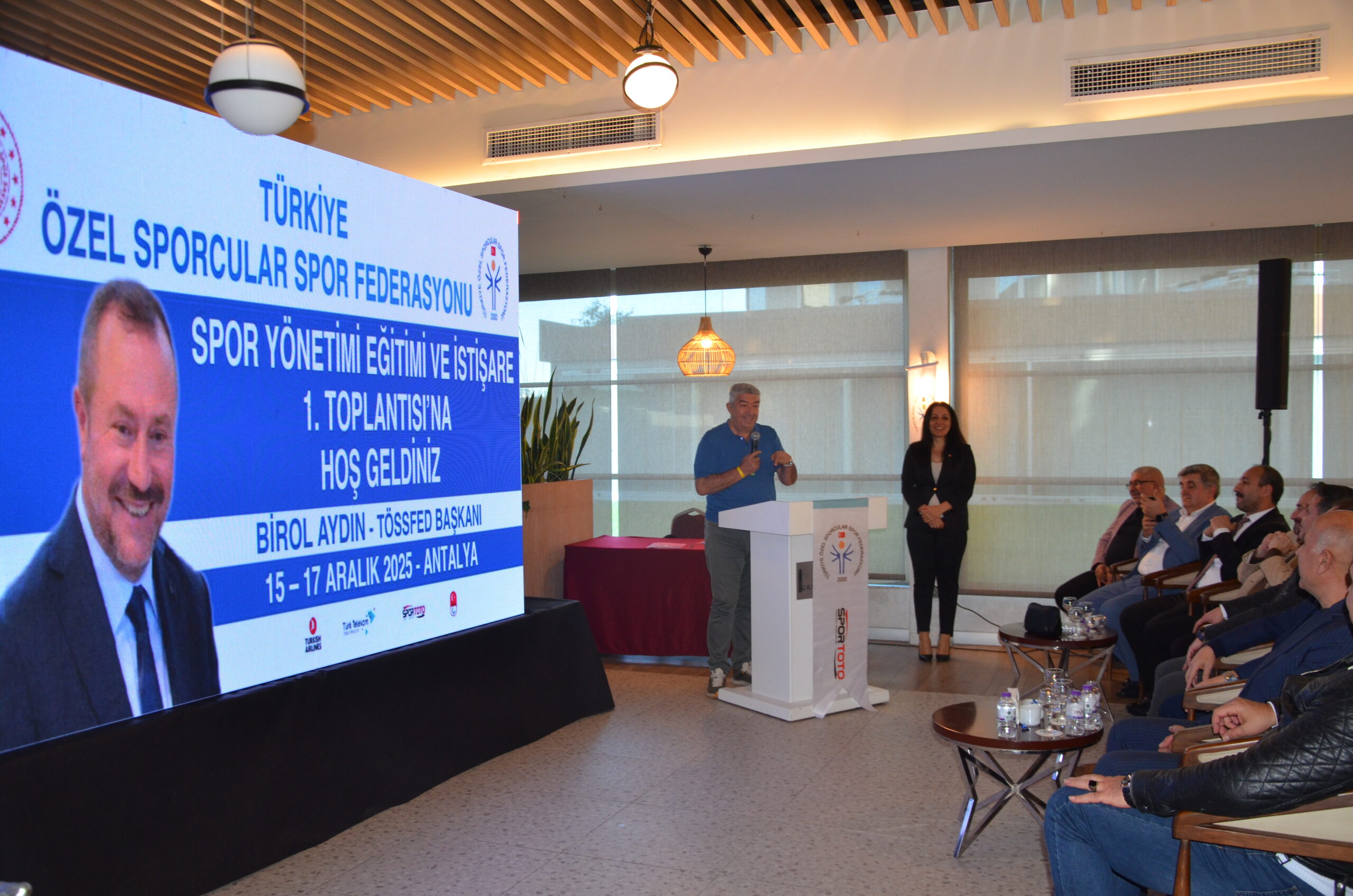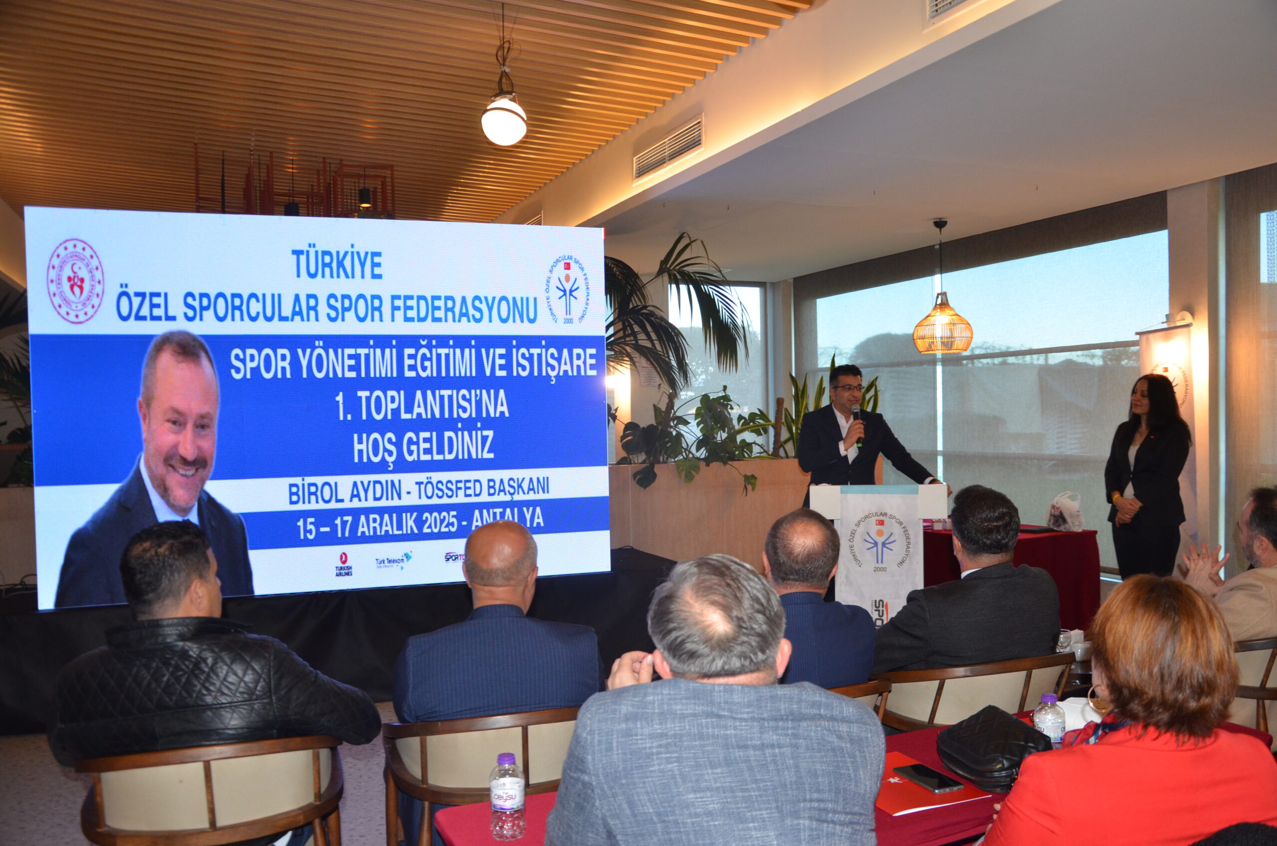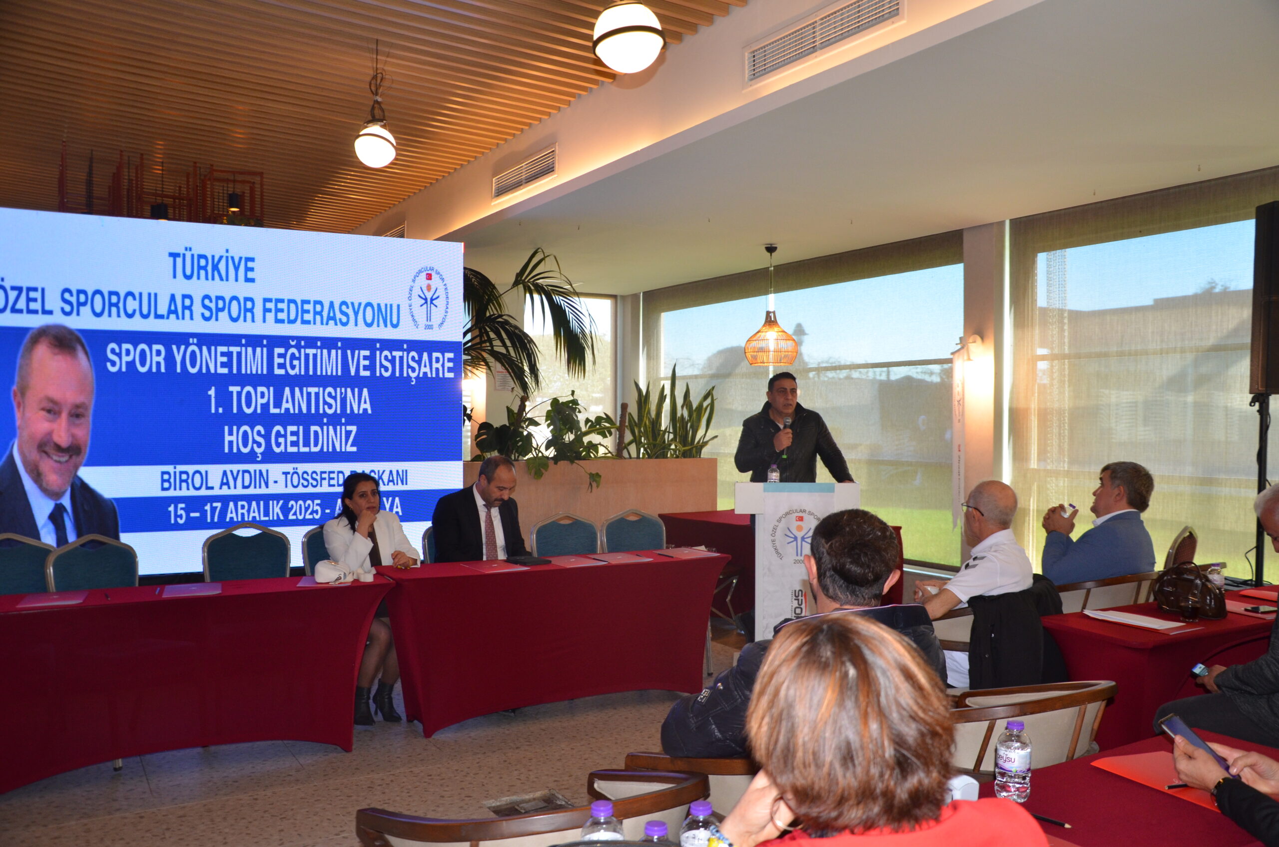 Türkiye Özel Sporcular Spor Federasyonu tarafından düzenlenen Spor Yönetimi Eğitimi ve İstişare 1. Toplantısı, 15–17 Aralık tarihleri arasında Antalya’da yoğun katılım ve verimli oturumlarla gerçekleştirildi. Türkiye’nin 81 ilinden kulüp yöneticileri ve il temsilcilerinin yer aldığı toplantı, geniş katılımlı istişare organizasyonlarından biri oldu.
