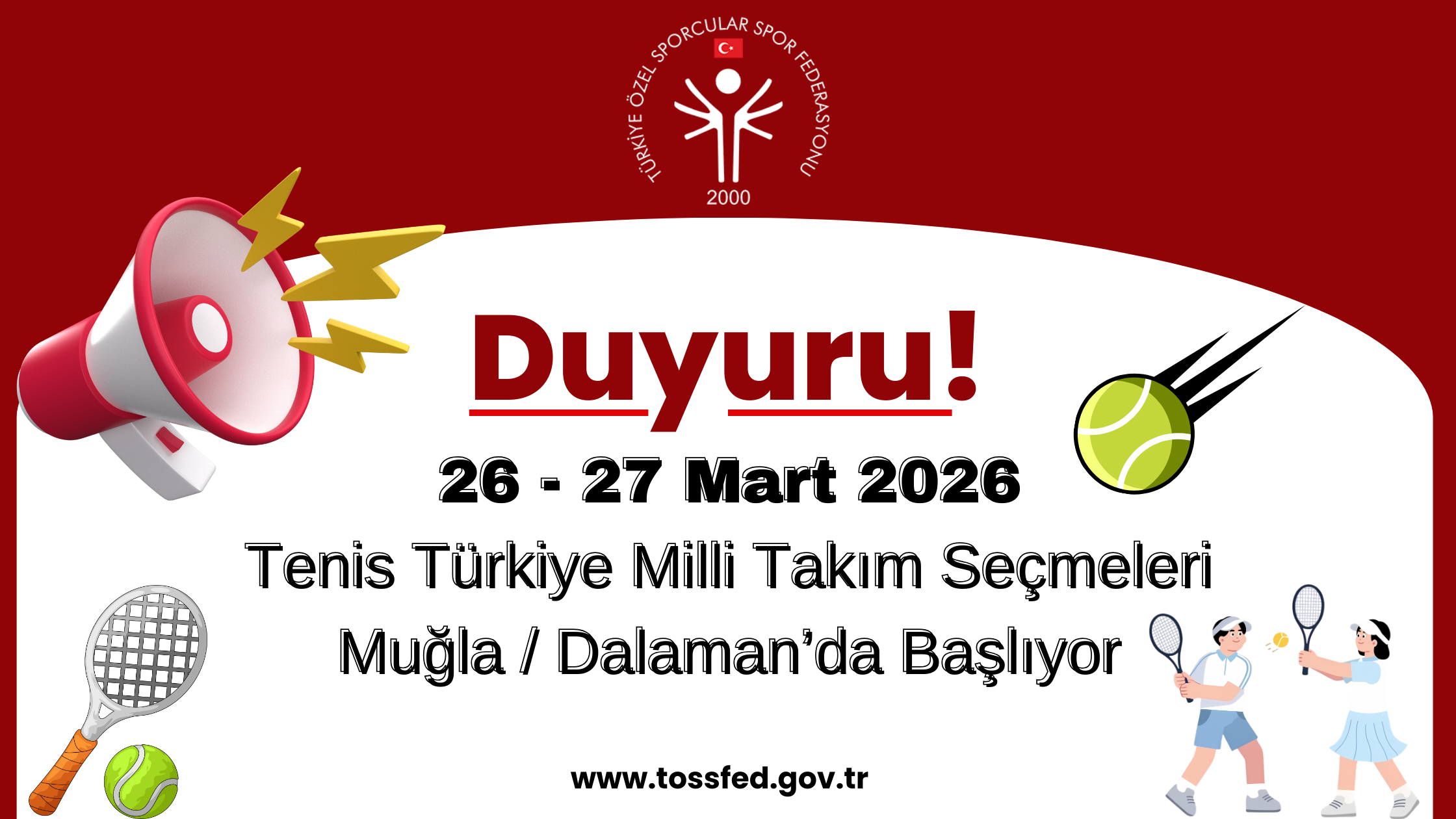 Türkiye Tenis Milli Takım Seçmeleri 26 – 27 Mart 2026 tarihleri arasında Muğla / Dalaman’da yapılacaktır.